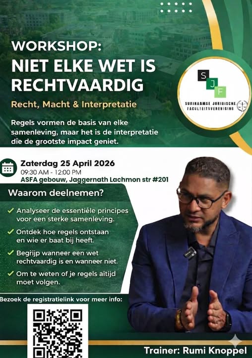 De Faculteit der Juridische Wetenschappen van de Anton de Kom Universiteit van Suriname, in samenwerking met de University of Curaçao, organiseert op donderdag 14 mei 2026 een symposium over actuele ontwikkelingen binnen het belastingrecht in Suriname.